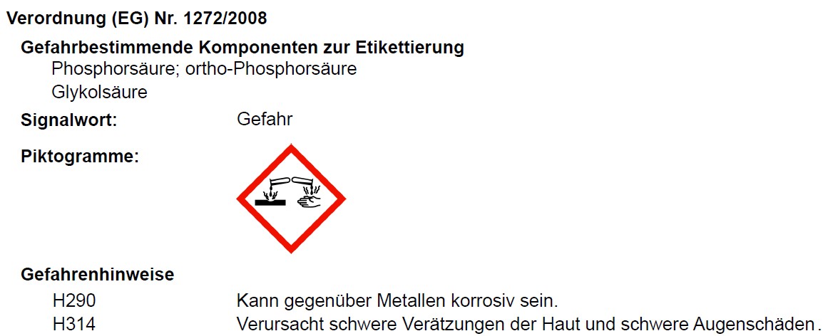 Konkret wird es in 10%iger Lösung mit Wasser im Tauchbad angewendet, in dem Kleinteile wie Muttern, Schrauben, Scharniere, Bolzen, Schlossteile, etc. bequem entrostet werden können.