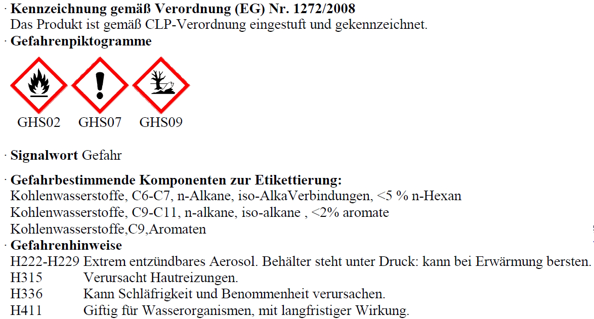 Vor Gebrauch gut aufschütteln, nach Gebrauch auf dem Kopf stehend Ventil sauber sprühen.