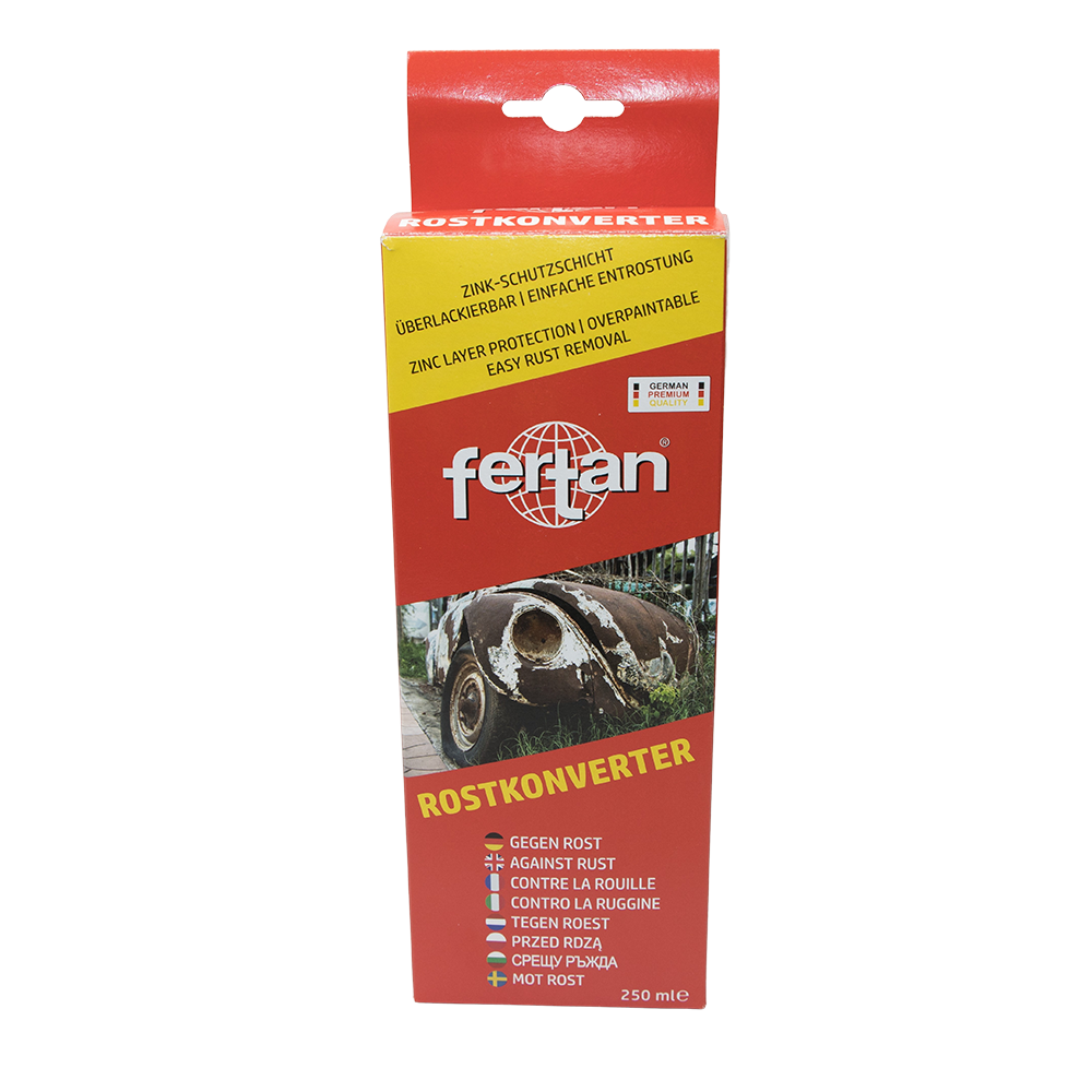 FERTAN Rostkonverter ist ein hochwirksames Produkt gegen Rost und ermöglicht das Lackieren auf den vorher rostigen Stellen.