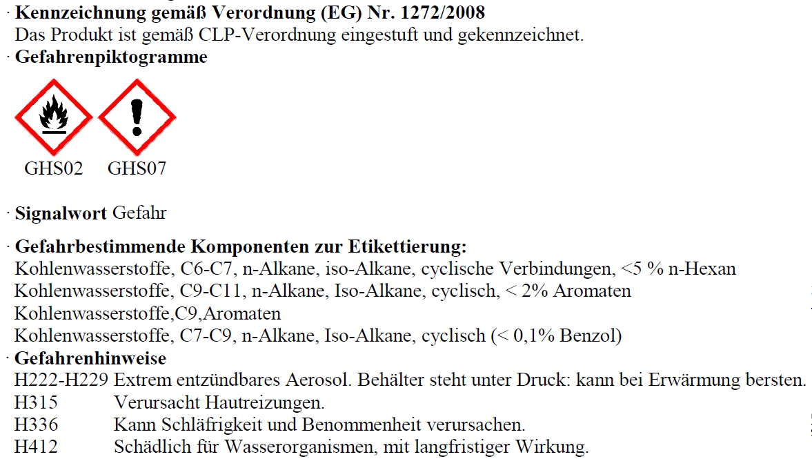 Vor Gebrauch gut aufschütteln, nach Gebrauch auf dem Kopf stehend, Ventil sauber sprühen.