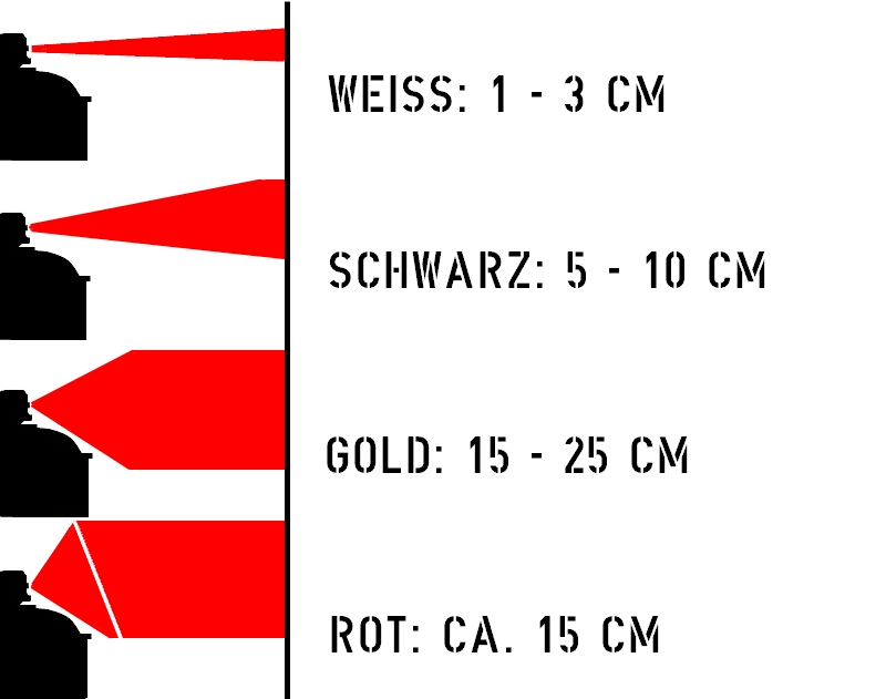 - 1x flächig, rot, Sprühstärke ca. 15cm (sehr breiter Sprühstrahl -drehbar- für Fahrzeuglackierungen)
